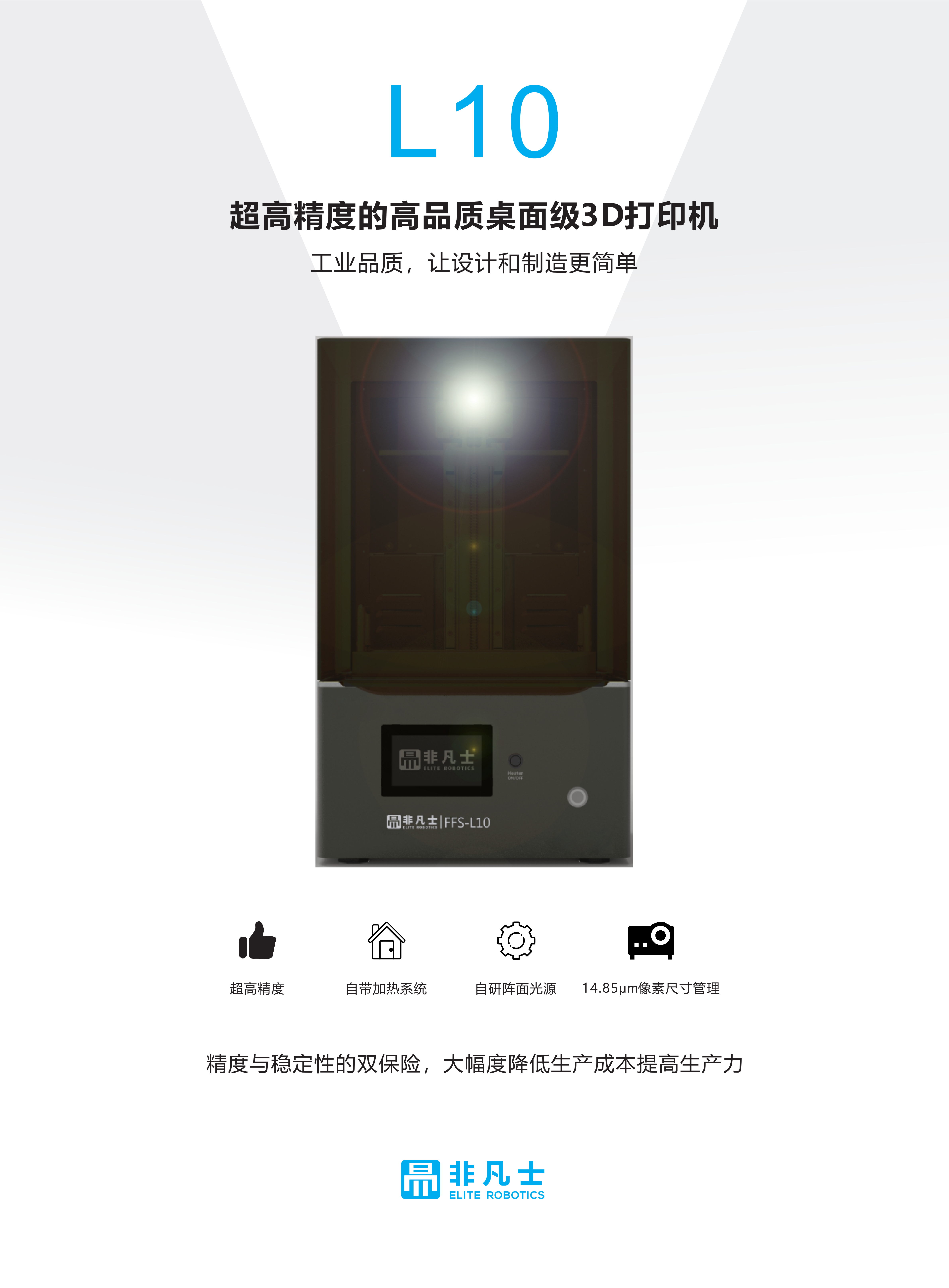 非凡士L10是我們所設(shè)計(jì)的專業(yè)級(jí)高精度桌面3D打印機(jī),專門為動(dòng)漫和頭雕模型、手辦等行業(yè)所設(shè)計(jì),可大幅度地提高生產(chǎn)力。它采用自研陣面光源,使得光源更均勻,打印精度更好。同時(shí),L10搭配工業(yè)P級(jí)高精度雙導(dǎo)軌,行走平行精度達(dá)7μm,提供了無(wú)與倫比的穩(wěn)定性。L10重新定義了快速原型制作,確保高質(zhì)量、精密的模型觸手可及。選擇邁想L10,擁抱精度與穩(wěn)定性的制造業(yè)未來(lái)。