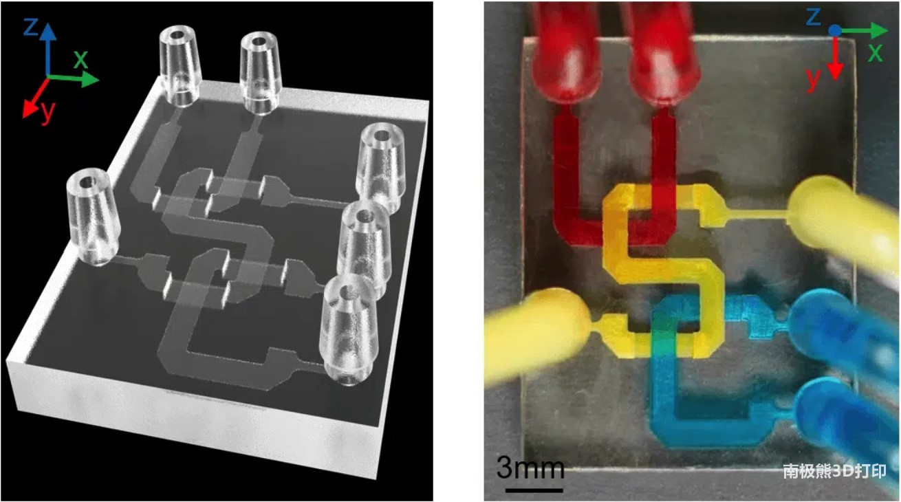 微流控芯片的生產(chǎn)涉及到諸多繁瑣復雜的步驟,微小的通道和孔往往需要手工蝕刻或模壓到透明的樹脂芯片中進行測試。雖然3D打印為生物醫(yī)學設備的制造提供了許多優(yōu)勢,但直到現(xiàn)在大多數(shù)技術都不夠靈敏,無法構建微流控設備所需的精細層結構。