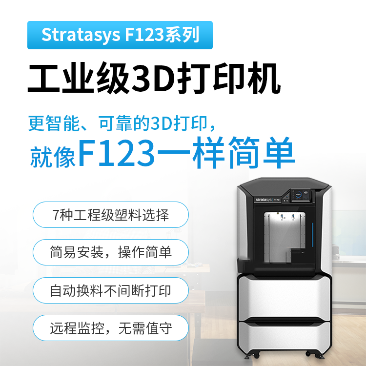 Stratasys FDM3D打印機F123系列3d打印機,更智能更高效,3d打印從沒有如此簡單,輕輕松松便可以實現連續性的工業級別生產制造,構件種類繁多且精密的零件器械,真正意義上達到數字化制造,一體化的成型的現代化制造業領先水準。
