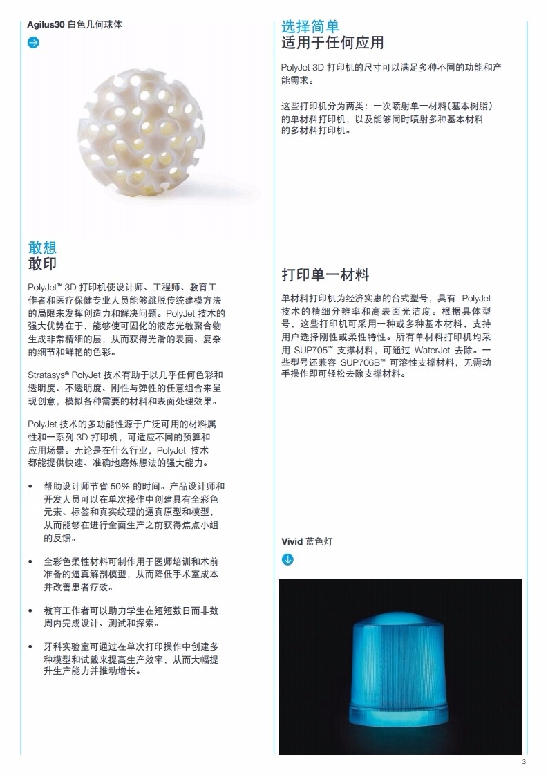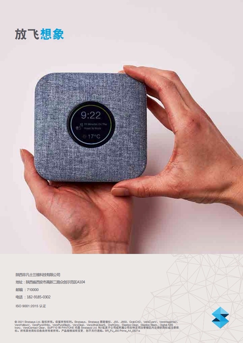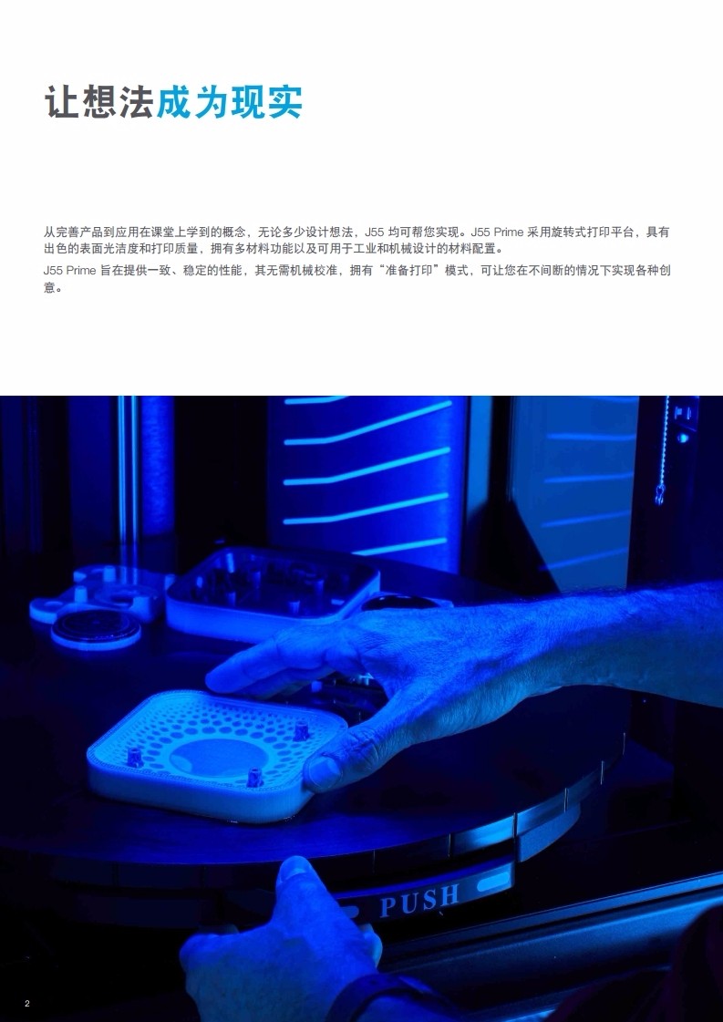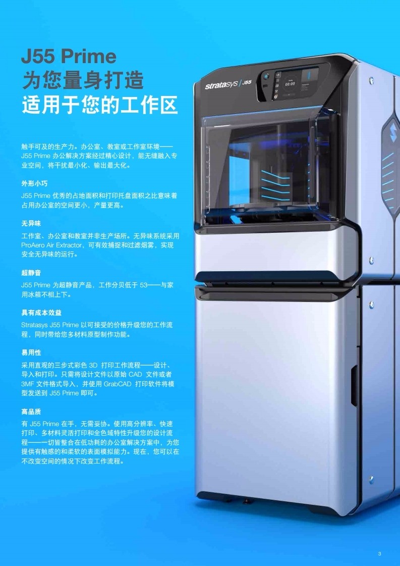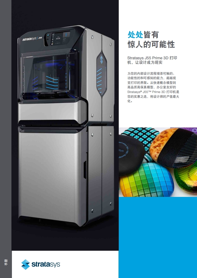 Stratasys J55 Prime探索3d打印機的更多可能性,從快速模型到保真構件,運用我們的強大功能將你的想法變為現實,j55采用螺旋式打印平臺,在保證速度的同時還可以大大提高打印件的表面光滑程度和精細度,出色的穩定性能,擁有準備打印模式,可以讓你的打印活動永不間斷,無需重復校準。外形小巧、無異味、超靜音、簡單易用、高品質,直接導入設置模型,原始的CAD和3MF文件在J55都可以直接使用,有效的提高了你的打印效率,無需妥協,肆意創造。