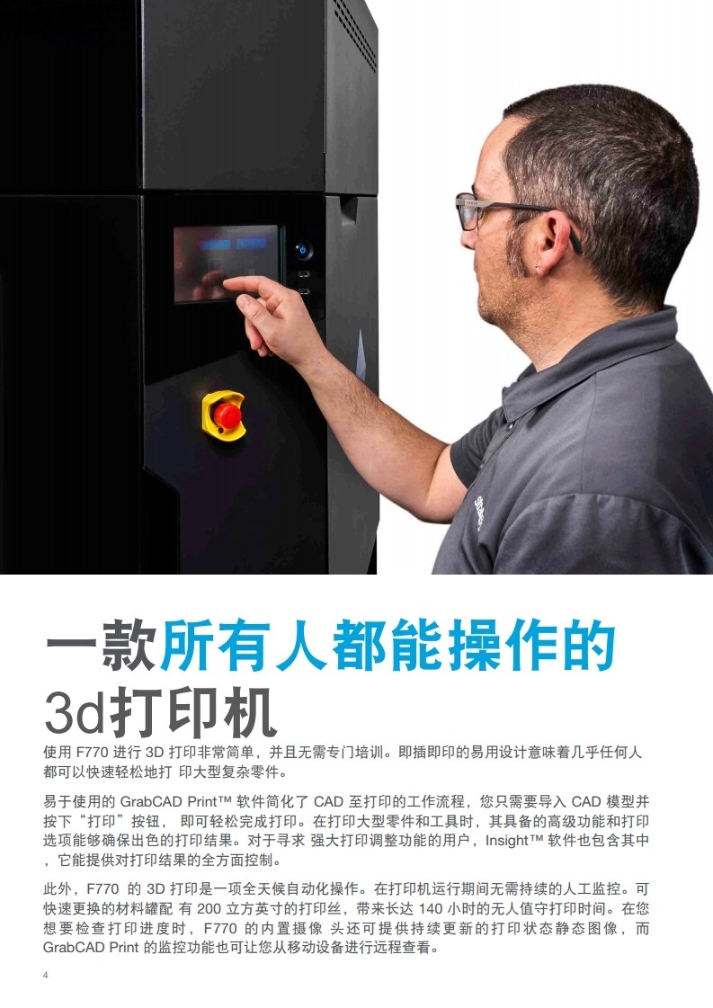 Stratasys F770 ? 3D 打印機(jī)使打印大型復(fù)雜零件變得更便宜、更可靠并且更簡便。易于使用的大尺寸FDM打技術(shù),工業(yè)級(jí)規(guī)模3d打印機(jī),輕輕松松幫助你省去大量時(shí)間,打印精度高達(dá)0.002mm,構(gòu)件尺寸在1000 x 610 x 610 毫米,最大對(duì)角線長度 – 1,171 毫米 (46.1 英寸),輕輕松松幫助你實(shí)現(xiàn)高性能打印時(shí)刻,兼容多種耗材,F(xiàn)770讓創(chuàng)意不在有所限制。F770專門面向尖創(chuàng)行業(yè), 大型零件打印并不一定意味著成本高昂。F770 的設(shè)計(jì)目的在于以更實(shí)惠的價(jià)格,實(shí)現(xiàn)可靠的大規(guī)模打印,并且更易于使用。這之所以成為可能,是因?yàn)椴⒎撬?D打印應(yīng)用都需要高性能材料,或者并非 所有功能都需要 整合到大型且更昂貴的打印機(jī)中。 F770 支持廣泛使用的工程級(jí)熱塑塑料,同時(shí)提供 Stratasys FDM 的可靠性。這款打印機(jī)還配備MTConnect,可即刻投入到您的智能工廠中。所有功能都在F770大型3d打印平臺(tái)上實(shí)現(xiàn),旨在為大型復(fù)雜零件的3D打印創(chuàng)造最大價(jià)值。