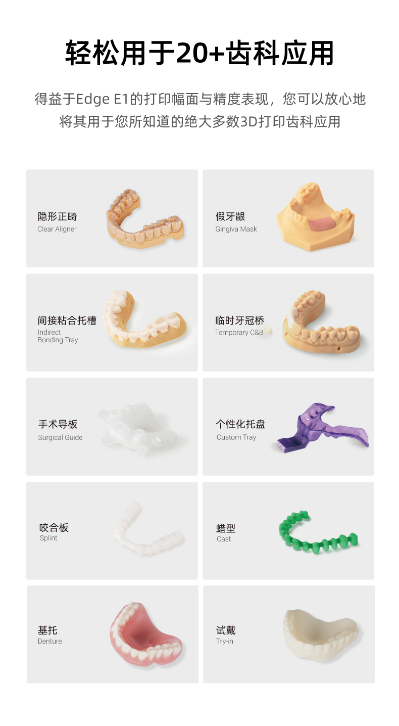 Rayshape高性價比的專業齒科3D打印機開啟數字化齒科的理想之選,Edge E1系列視覺層次豐富,質感細膩,操作細節對用戶友好取拿成型平臺與樹脂槽等高頻操作,均可以在較短路徑完成操作。