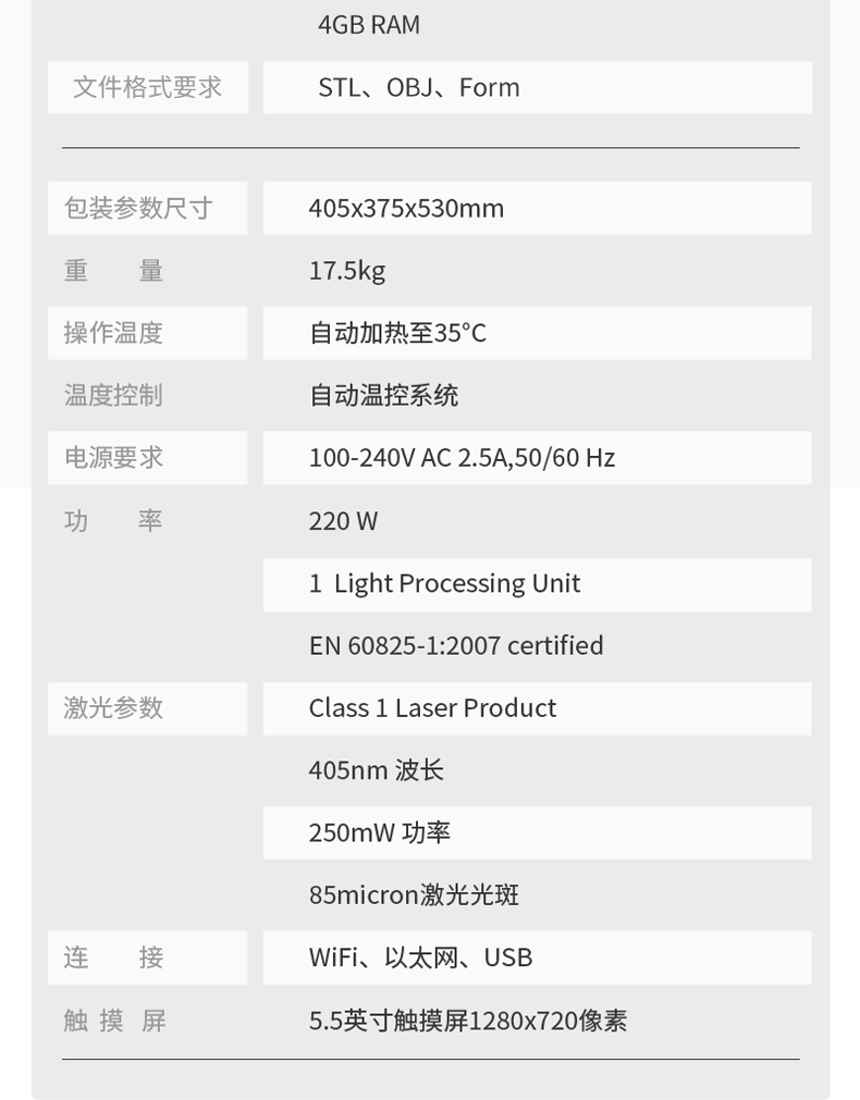 Form 3 將強(qiáng)大的立體光固化 (SLA) 技術(shù)搬到了桌面,僅需工業(yè)級(jí) 3D 打印機(jī)成本的一小部分,就可實(shí)現(xiàn)準(zhǔn)確的高精度打印。Form 3 由高精度光學(xué)引擎驅(qū)動(dòng),其創(chuàng)造的打印件細(xì)節(jié)精美,表面處理效果極佳,比其他塑料 3D 打印技術(shù)的打印件更為光滑和精細(xì)。節(jié)省用于后處理工序的時(shí)間和開支,增加用于創(chuàng)造的時(shí)間。
