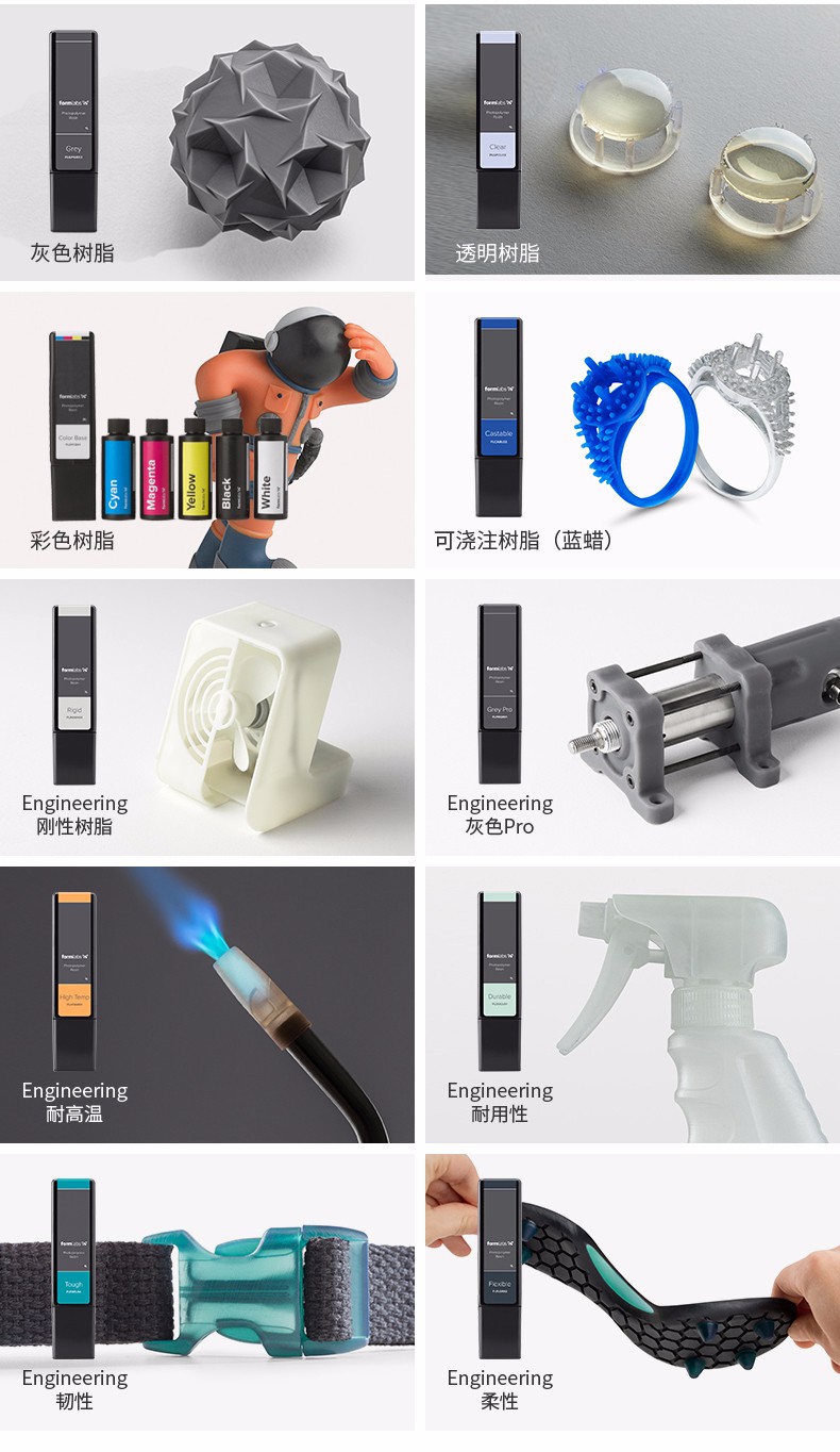 在通用、高級(jí)和專業(yè)材料庫之間無縫切換。我們的內(nèi)部材料科學(xué)團(tuán)隊(duì)正致力于研發(fā)新材料,以擴(kuò)大我們的 3D 打印機(jī)的性能。我們的樹脂專為我們的打印機(jī)而設(shè)計(jì),可提供具有光滑表面光潔度的功能性部件,其外觀、觸感、和工作效果都與最終產(chǎn)品如出一轍。